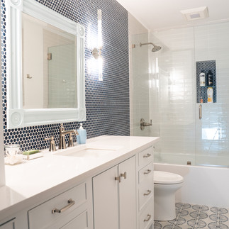 Adding small details in the powder room, a Master Bedroom that steps out into the Screened Porch, and a small dog house tucked under the stair. It was very important to modernize the new home while adding function to every corner.